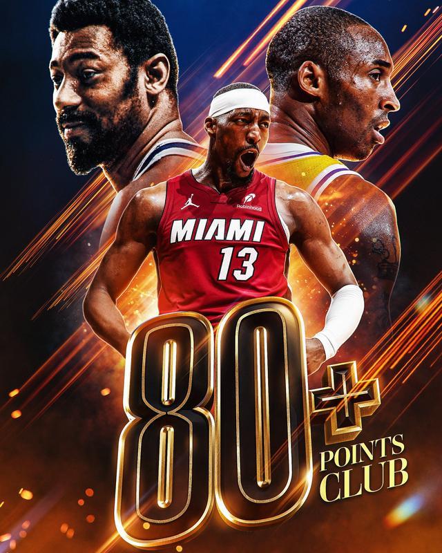 热火队的阿德巴约,那个平日里以“蓝领之王”、“防守核心”著称的内线,居然在对阵奇才的比赛中狂砍83分。是的,你没看错,不是38分,是83分!他不仅刷新了热火队史纪录,更一举超越了科比那场震烁古今的81分,直接坐上了NBA历史单场得分榜的榜二位置,仅次于张伯伦那个“远古神迹”100分。